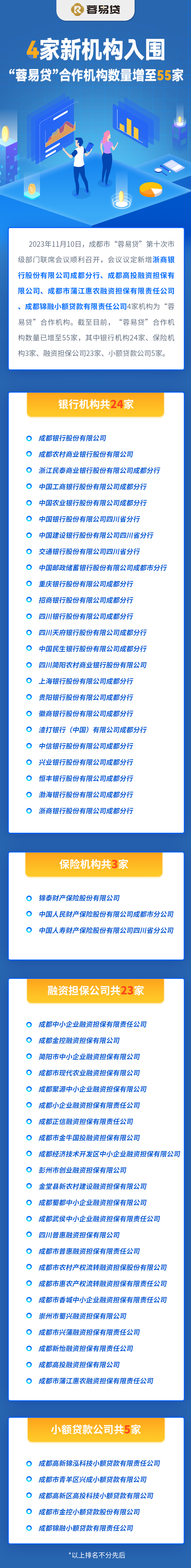 4家新机构入围!“蓉易贷”合作机构数量增至55家!